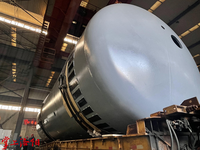- 12月25日,我公司生產(chǎn)的兩臺(tái)φ5×15m陽(yáng)極爐成功裝車(chē),即將發(fā)往客戶現(xiàn)場(chǎng)。 該產(chǎn)品直徑5米、長(zhǎng)15米,單臺(tái)爐體及配套設(shè)備重量達(dá)到385噸。雖然直徑高達(dá)5米,從爐體一端到15米
